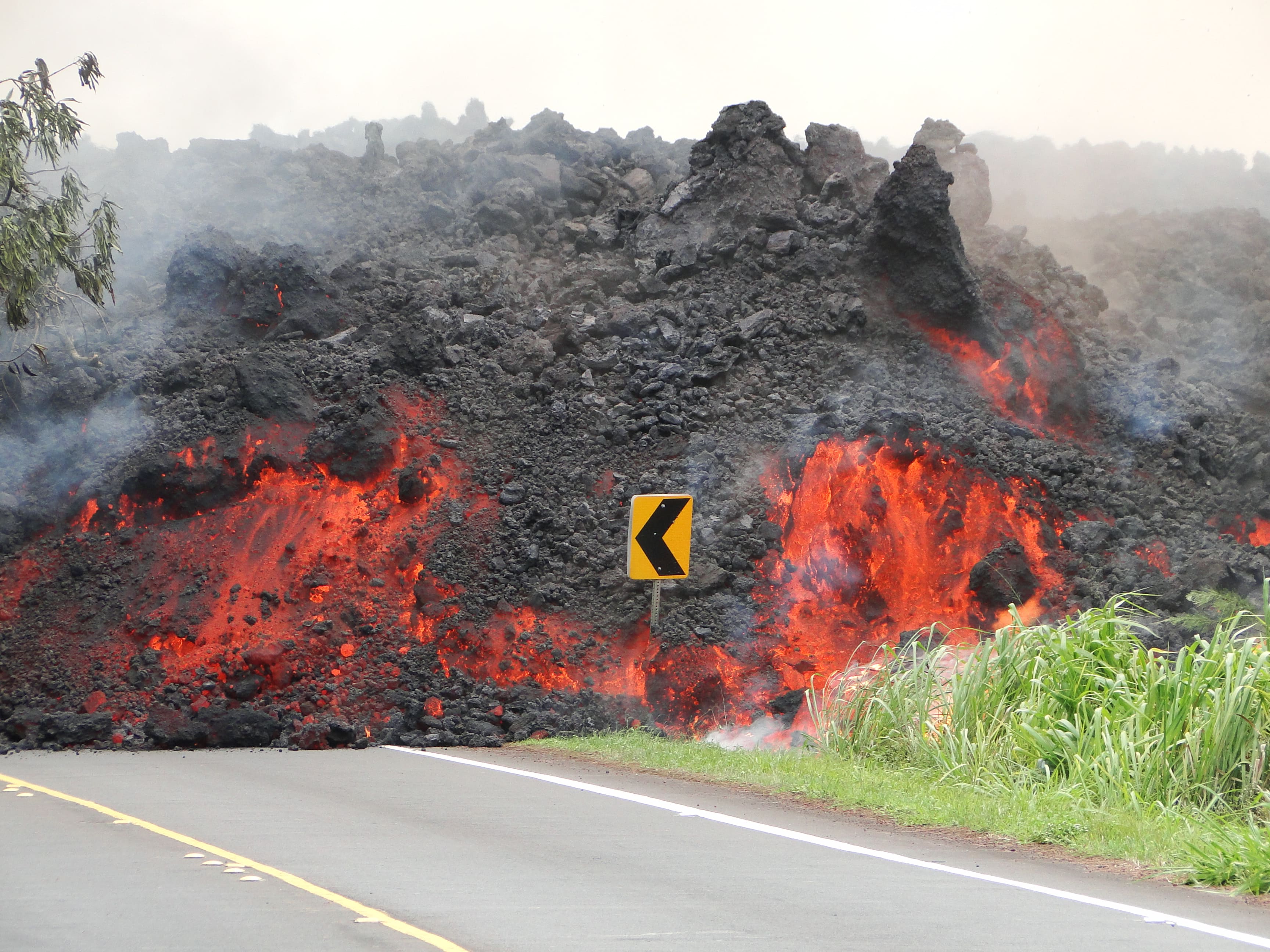 為900度以上的高溫且黏度大的熔岩液體,流動速度慢,對人的威脅較小。但因其高溫燃燒,對建築物破壞力較大。
